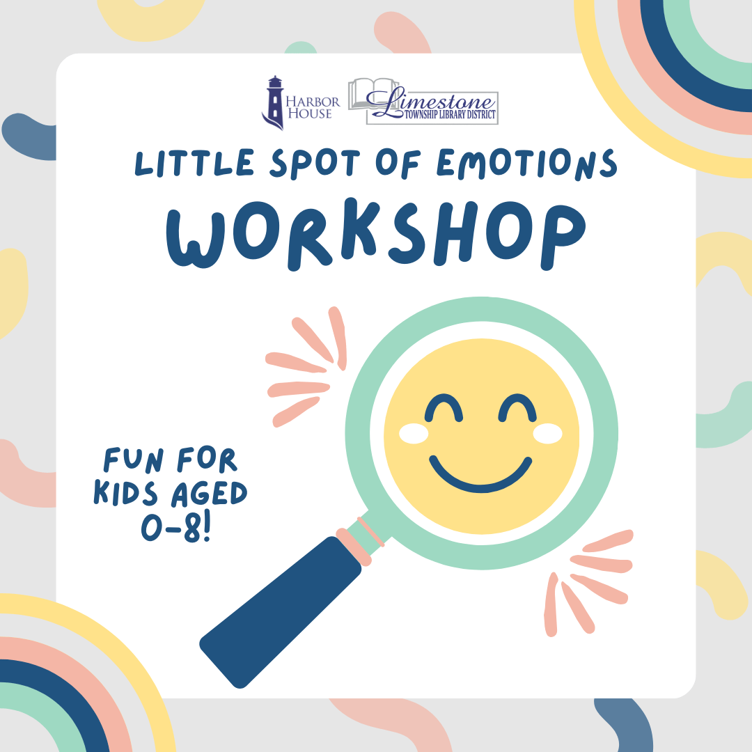 Join Harbor House and our friends at the Limestone Township Library District for our Little Spot of Emotions workshop! We will have a story time featuring the highly acclaimed book series "Little SPOT of Emotional Regulation" by Diane Alber. This series is an excellent resource for teaching children about emotions, self-regulation, and peaceful conflict resolution, aligning perfectly with our mission. Following story time, kids can enjoy crafts, giveaways and more!
